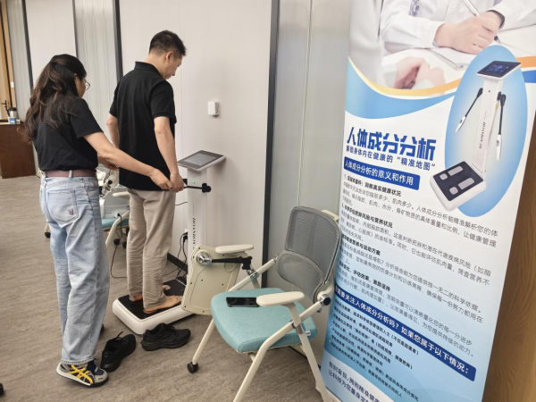 知識分享環節后,與會職工前往人體健康分析儀前進行體驗,生成專屬的人體健康分析報告,直觀掌握自身健康數據。現場專家以專業醫學視角,對分析報告進行詳細解讀,讓職工既能“看懂”數據,又能明確后續健康管理的方向。