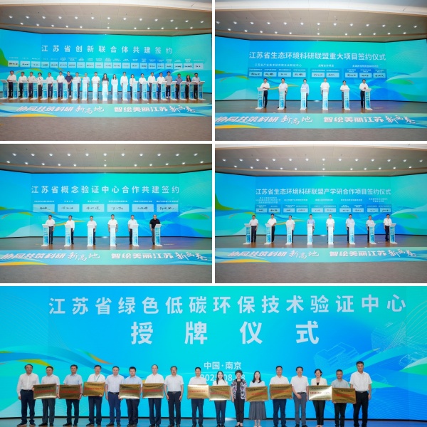 發布日期:2025-08-09 12:57 來源:科技創新部 字體:[ 大 中 小 ]8月8日,江蘇省生態環境科研聯盟2025年度會議在江蘇省環保集團科技創新基地舉行。本次會議以“協同共筑科研新高地,智繪美麗江蘇新畫卷”為主題,通過單位授牌、項目簽約、成果發布、專題研討等形式,推動產學研深度融合,助力江蘇綠色低碳高質量發展。中國工程院院士王超、省生態環境廳副廳長王燕楓、省國資委二級巡視員王玉峰、省新質生產力促進中心主任趙志強、省環境科學學會理事長于紅霞、南京工業大學原校長喬旭、長三角國家技術創新中心主任劉慶、中科戰略新材研究院院長黃富強、生態環境部環境規劃院研究員于雷等嘉賓出席本次活動。